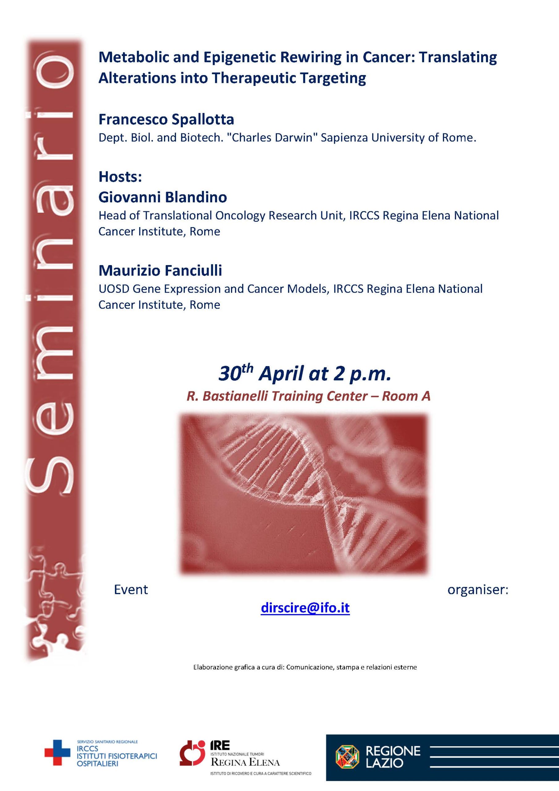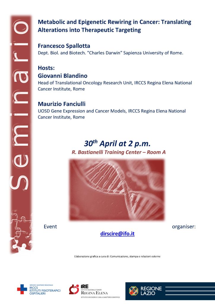SEMINARIO IRE: Metabolic and Epigenetic Rewiring in Cancer: Translating Alterations into Therapeutic Targeting